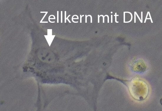 Die gezeigten Zellen sind eine Form mesenchymaler Stammzellen (siehe weiße Pfeile) mit auffällig stacheliger Gestalt – daher unser Spitzname „Mighty Spike“. Sie haften an Kunststoffoberflächen und besitzen die bemerkenswerte Fähigkeit, sich in verschiedene „Berufe“ zu verwandeln, etwa Nerven-, Muskel-, Knochen- oder Fettzellen. Sobald sie sich für eine Aufgabe entscheiden, verlieren sie diese Flexibilität. Zusätzlich spielen diese Zellen eine Schlüsselrolle bei der Gewebereparatur, Regeneration und Regulierung des Immunsystems.