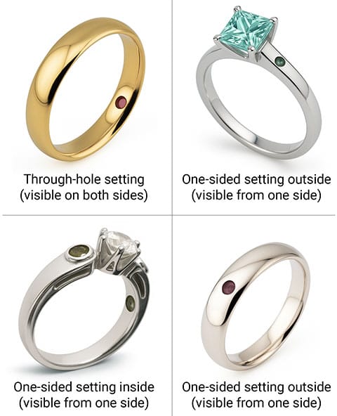 Bio Bling develops only the Cellstones, not the rings. This means you can combine your Cellstones with any ring or other jewelry—simply visit your nearby goldsmith or jewelry store to have them set into your preferred piece.